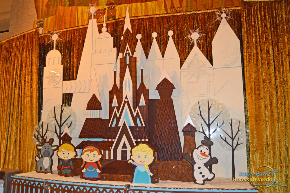 Have you heard about the “out of this world” gingerbread designs at the Disney World Deluxe Resorts? Each year, the Resorts put together a fantastic display of Gingerbread and what you will see at the Contemporary Resort is a kids favorite. Yes, that is right, you will get to see a mixture of old with the new when you see the incredible display of Gingerbread in an “It’s a small world” era showcasing your favorite characters and castle from the Movie Frozen. While you are enjoying the Gingerbread extravaganza, be sure to get some amazing treats behind the counter like Gingerbread and even small Gingerbread Houses.