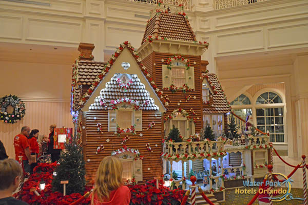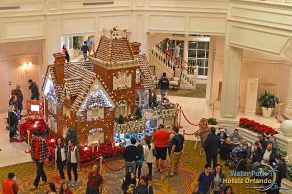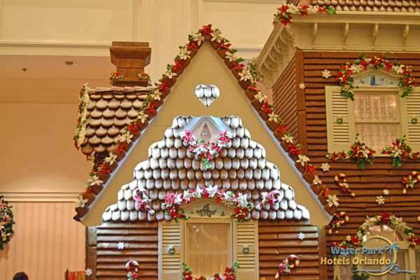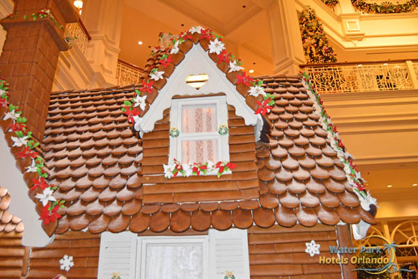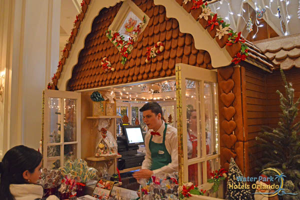 One of the great things to do at Christmas in Disney World is to see all of the incredible Gingerbread features created at each of the Disney World Deluxe Resorts. You don't have to stay at the Resort to go look at the decorations and I promise it will be worth your time. One of the most impressive structures you will see is the life-sized Gingerbread House on display in the main lobby of the Disney Grand Floridian. Seeing this house made of Gingerbread for the first time and finding out that everything is it made of is edible is completely mind-blowing. The detail to every flower, window, siding, and roof are all able to be eaten but don't try to take anything off of the house, head to the back side of the house, and you can actually purchase some Christmas Cookie delights along with your favorite hot beverage.