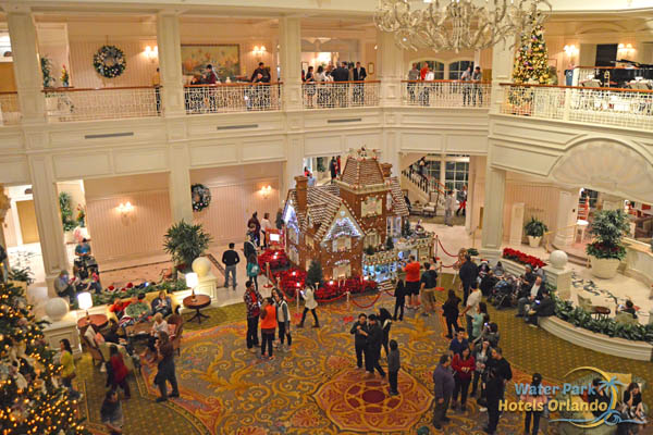 There is nothing that makes Christmas more special than being able to walk up to a life-sized Gingerbread House and order a slab of Gingerbread and Hot Chocolate and that is precisely what you will be able to do when it is Christmas at the Grand Floridian in Disney World. Elegance prevails, especially at Christmas time at the Grand Floridian. As soon as you walk up to the main entrance, the string lighting of old and perfectly lit animals make the path to guide you inside. Your jaw almost hits the floor the first time you see the magnificent size of the Christmas tree in the 5-story tall atrium and the kids will run to stand directly underneath. This is a great place to capture a memory with video or photos so be sure to have your camera ready.