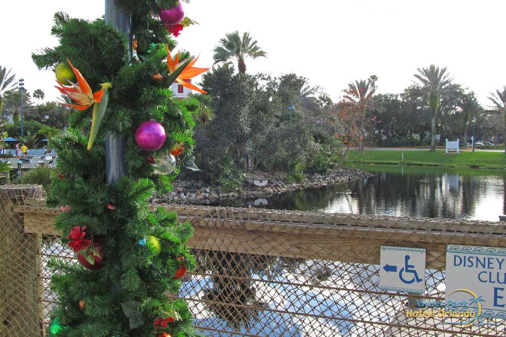 Walking around the Old Key West Disney Vacation Club Resort around Christmas time makes for a wonderful family moment. Great family photos await in front of the large Christmas Tree in the lobby and getting your picture on the bridge with garland wrapped light poles and the beautiful Florida blue sky, will make anyone wish they were with you on your trip. Hop on the Water Taxi and cruise over to Disney Springs to see more Christmas joy from decorations to the music of the holidays being played in the streets.