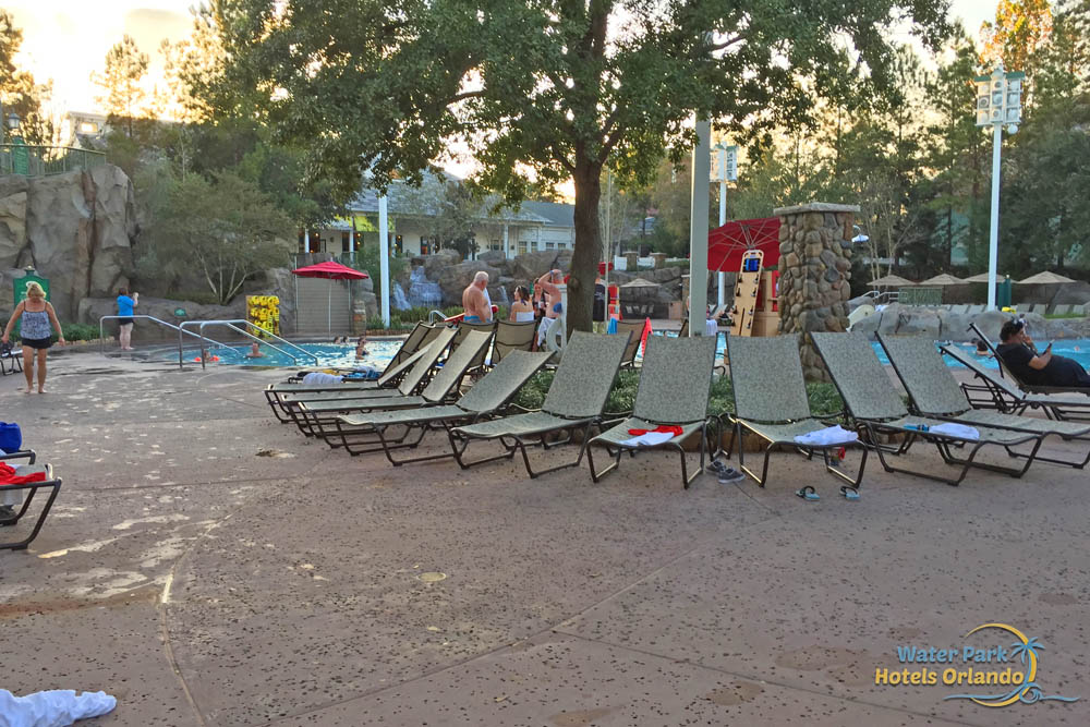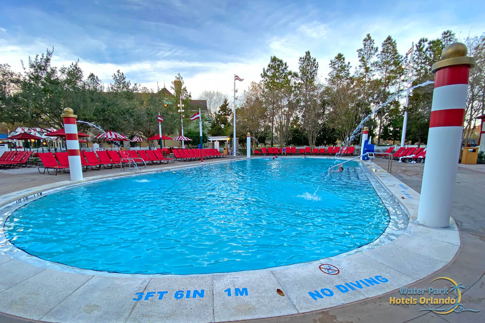 I would consider the Congress Park Pool and the Treehouse Villa Pool the two more subdued Pools at Saratoga Springs Resort in Disney World. There are not any Kids Water fun areas at either of these pools which make them perfect for adults to enjoy and not have as much noise as some of the larger family pools.