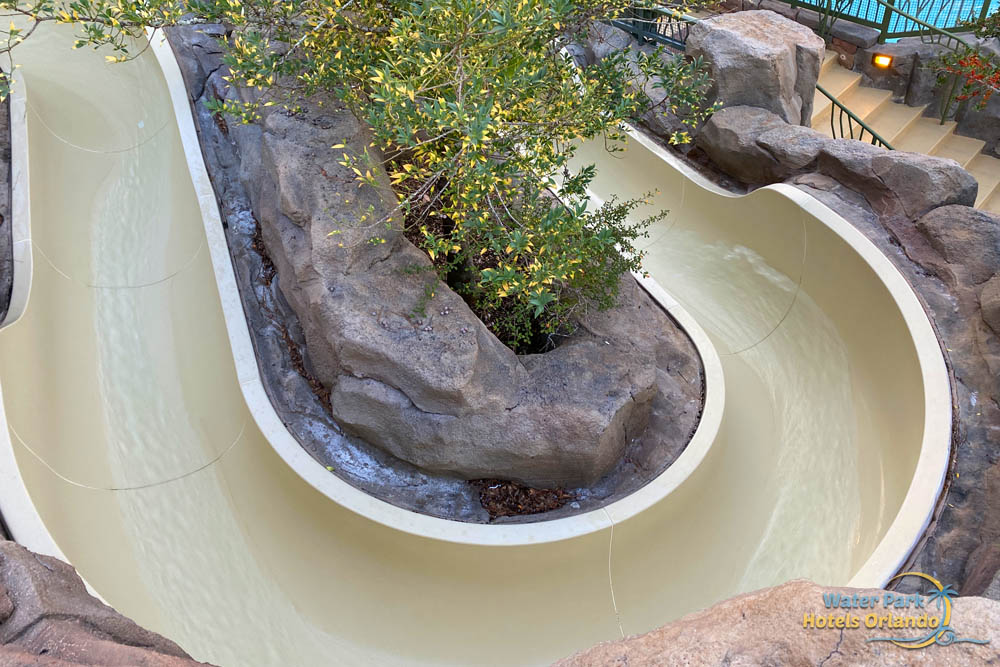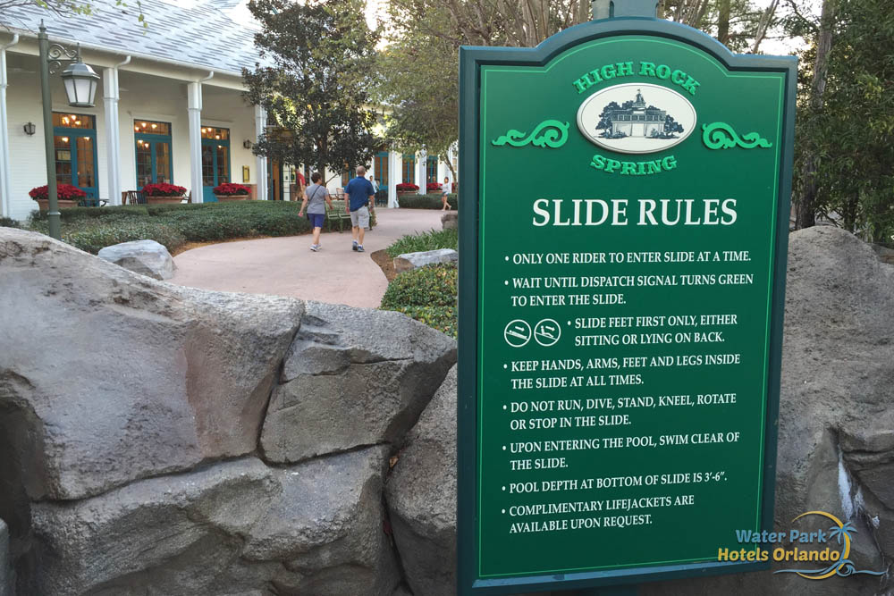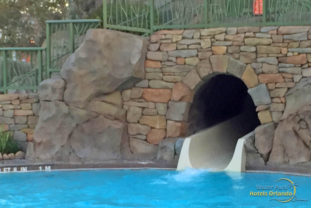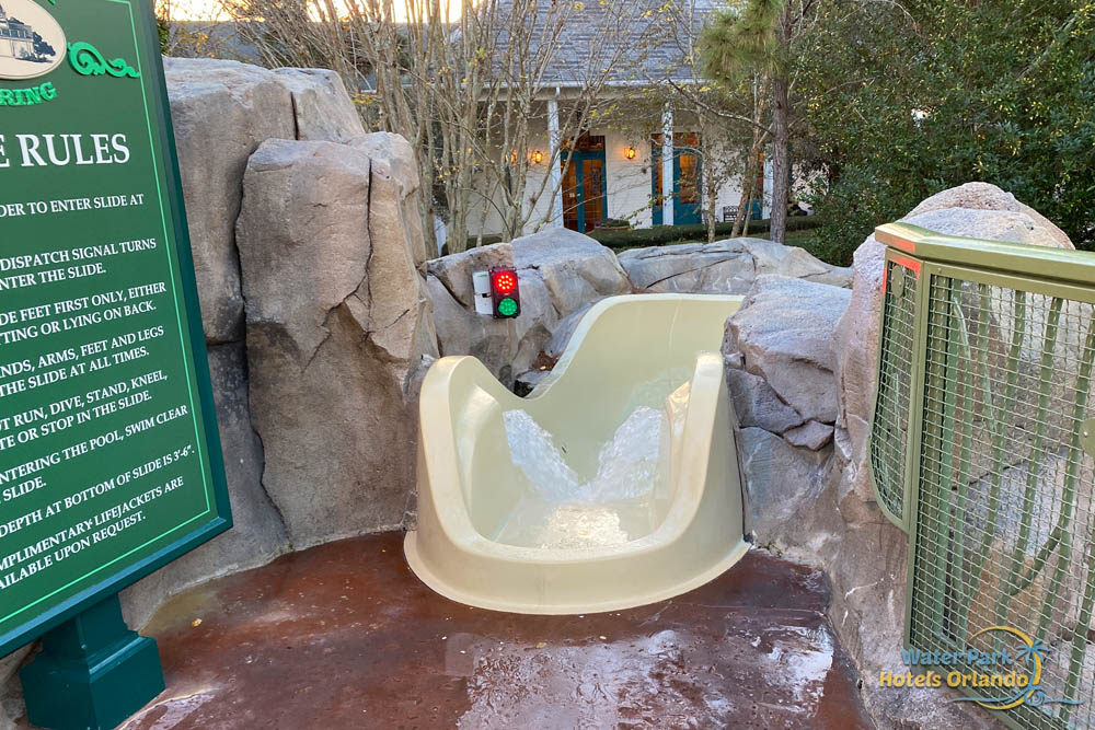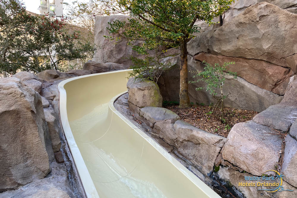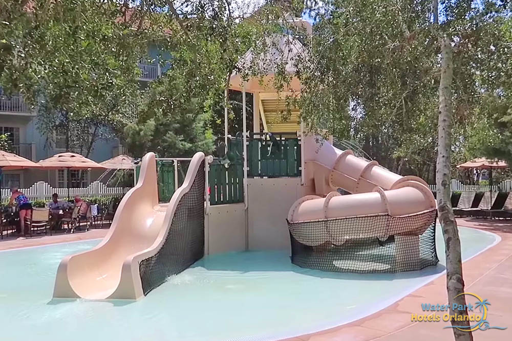 There are multiple water slides at the Saratoga Springs Resort. The longest water slide is 146-feet long and is located at the Paddock Pool. There is also another 128-foot water slide at the High Rock Spring Pool. For the little ones, there are 2 small water slides at this kids splash park at the Paddock Pool and one (1) small slide at the High Rock Spring Pool.