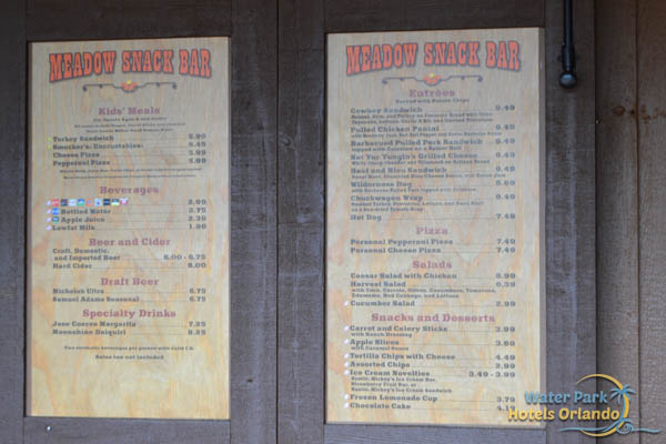 Get away from the recreation and family fun and visit the Wilderness Swimmin' Pool for a quieter place to get wet. A large Hot Tub is a favorite for the adults at the Wilderness Pool but there is not a bar at this location.Meadow Snack Bar