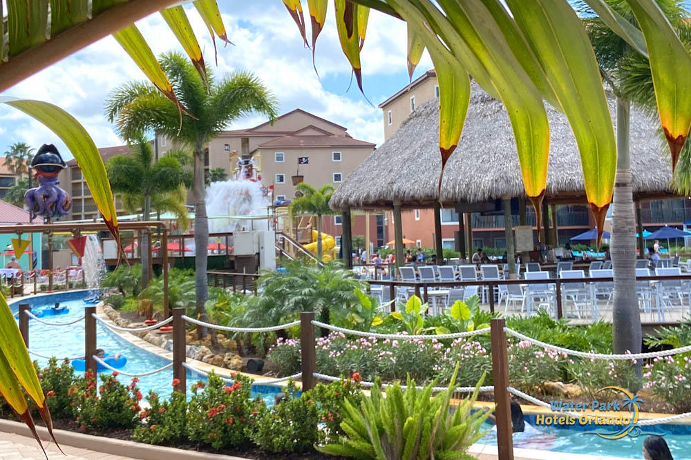 - Dining Options: No need to leave the water park when you get hungry. Walk across one of the bridges, over the lazy river to the Tiki Bar to get your favorite adult beverages, burgers, hot dogs, and great sandwiches.